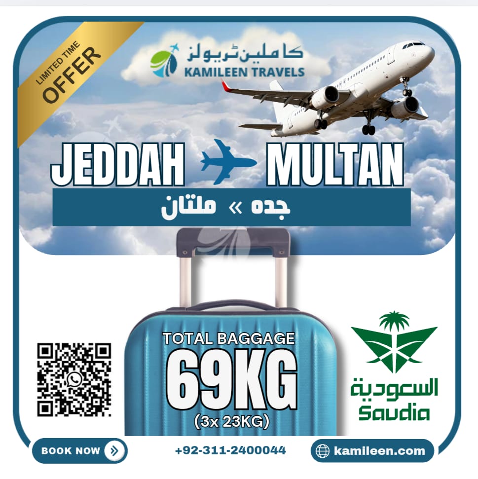 Jedda Se Multan Ka Safar Howa ab Asan. Ziyada Baggage Ki sahulat k sath wo Bhi Saudi Airlines Offer men.